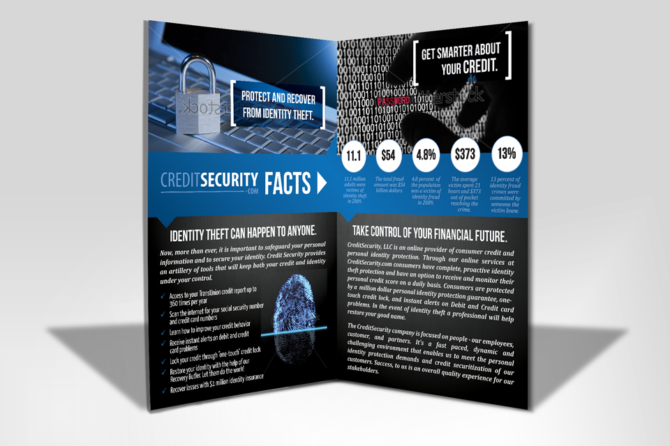 The next few items are single sheet and bi-fold brochures. Depending on what your message is you could use designs like this for a company overview or get a little more detailed on a single product or service that you will be offering your clients in the near future.